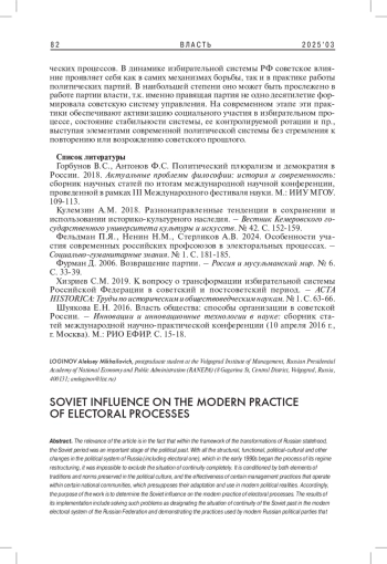 ЛОГИНОВ А. М. СОВЕТСКОЕ ВЛИЯНИЕ НА СОВРЕМЕННУЮ ПРАКТИКУ ИЗБИРАТЕЛЬНЫХ ПРОЦЕССОВ // ВЛАСТЬ. 2025. ТОМ 33 № 3