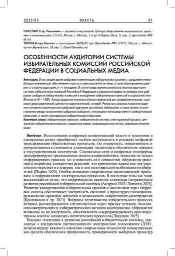 Исследование цифровых коммуникаций власти и населения в социальных медиа приобретает особую актуальность в условиях цифровой трансформации общественных процессов, где открытость, оперативность и интерактивность становятся ключевыми элементами обеспечения доверия к государственным институтам.
