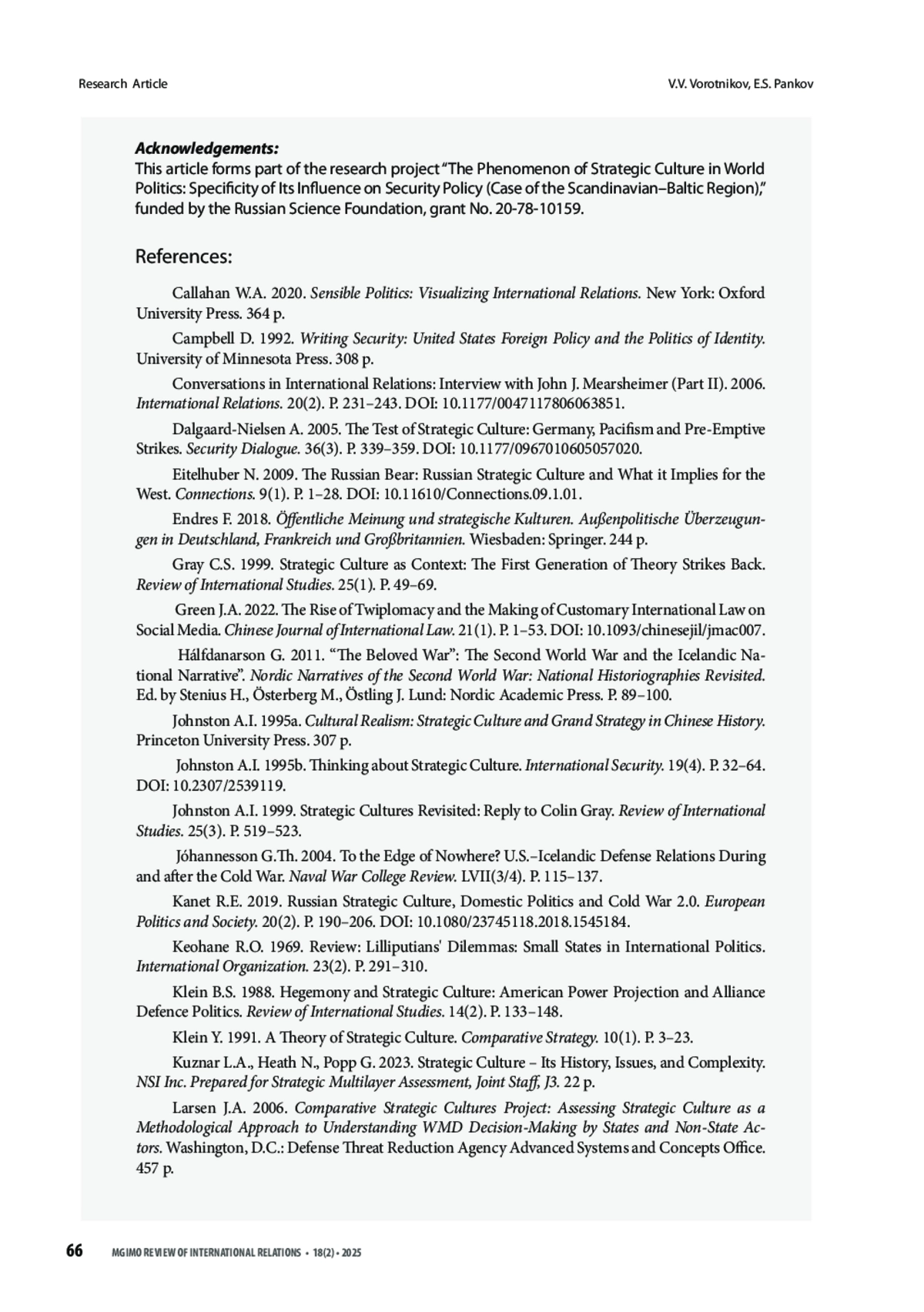 7. Gray C.S. 1999. Strategic Culture as Context: The First Generation of Theory Strikes Back. Review of International Studies. 25(1). P. 49-69.