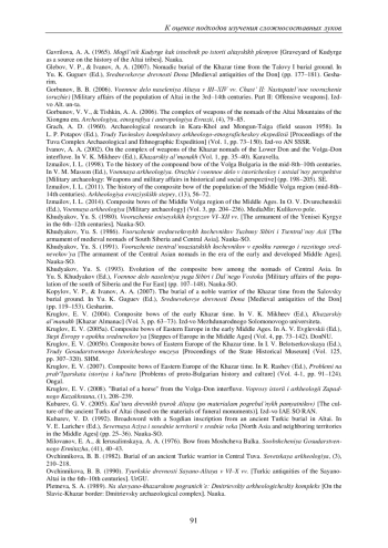 14. Круглов Е.В. Сложносоставные луки раннехазарского времени // Хазарский альманах / гл. ред. В.К. Михеев. К.; Харьков: Изд-во Междунар. Соломон. ун-та, 2004. Т. 3. С. 63-73.