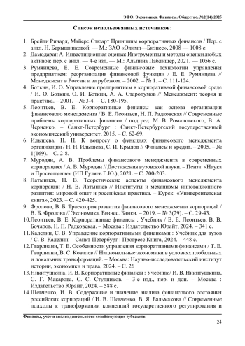 Статья: РОЛЬ И ФУНКЦИИ ФИНАНСОВОГО МЕНЕДЖМЕНТА В КОРПОРАТИВНЫХ СТРУКТУРАХ (2025)