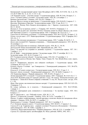 В центре внимания настоящего исследования находится история университетских столовых в 1920-х - середине 1930-х гг., рассмотренных как пространства повседневности, оказывавшие влияние на складывание нового советского «красного» студента. Основными источниками стали материалы периодических изданий Ленинградского, Казанского, Саратовского, Свердловского, Московского и других университетов, в которых проблема организации студенческого питания получила широкое освещение. Были привлечены также архивные материалы, посвященные материально-бытовому положению студенчества, и воспоминания бывших студентов и сотрудников университетов, в которых отражены различные аспекты студенческой жизни. В работе показано, что основные проблемы университетских столовых на протяжении всего рассматриваемого периода оставались в целом неизменными: низкое качество еды, пыль, грязь, несоблюдение элементарных норм гигиены, очереди и пр. К этому добавлялось тяжелейшее материальное положение студентов, которым не хватало денег даже на удовлетворение минимальных жизненных потребностей. Власть старалась канализировать недовольство студентов, перенаправляя его на руководство и сотрудников столовой, представителей органов, ответственных за организацию питания, и даже профессуру. Сложившаяся ситуация во многом отражала процессы, которые происходили в связи с активно проводившейся пролетаризацией высшей школы. Студенты постепенно теряли особый статус и самостоятельную роль в обществе, каковыми обладали в дореволюционный период. Вместо этого они приучались к покорности, унизительному существованию в условиях формализма и неэффективности советских управленческих механизмов, приобретали навыки борьбы за доступ к скудным привилегиям, одной из которых было качественное питание.