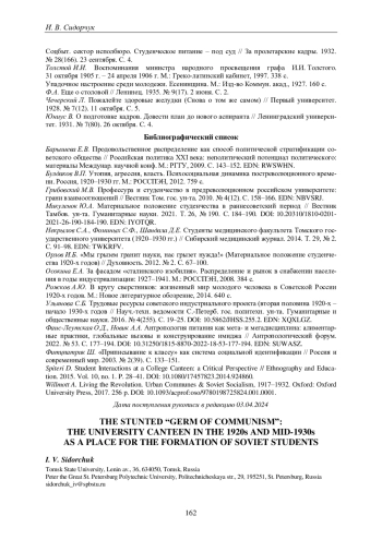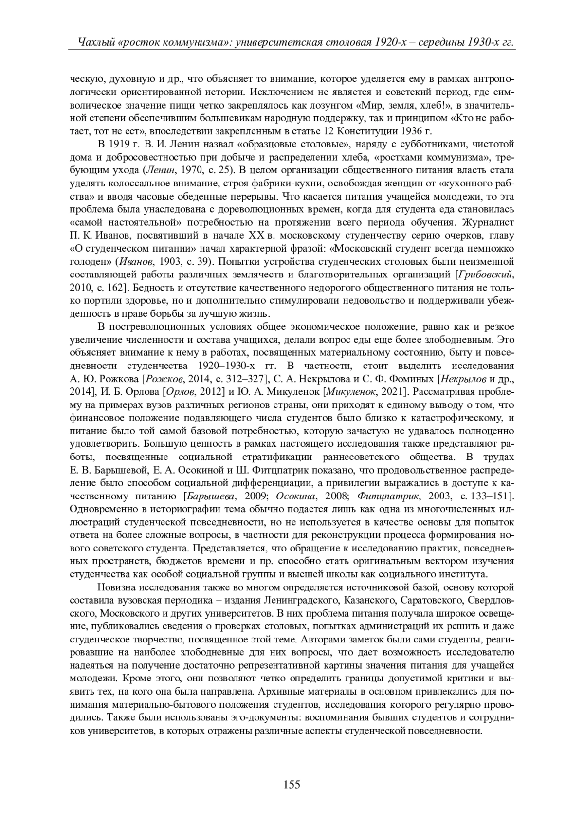 Статья: ЧАХЛЫЙ «РОСТОК КОММУНИЗМА»: УНИВЕРСИТЕТСКАЯ СТОЛОВАЯ 1920-Х - СЕРЕДИНЫ 1930-Х ГОДОВ КАК МЕСТО ФОРМИРОВАНИЯ СОВЕТСКОГО СТУДЕНТА (2025)