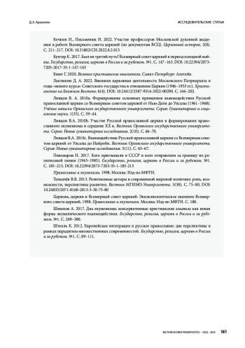 28. Пивоваров Н. 2017. Кого приглашали в СССР и кого отправляли за границу по религиозной линии (1943-1985). Государство, религия, церковь в России и за рубежом. №1. С. 185-215. https://doi.org/10.22394/2073-7203-35-1-185-215 Православие и экуменизм. 1998. Москва: Изд-во МФТИ.