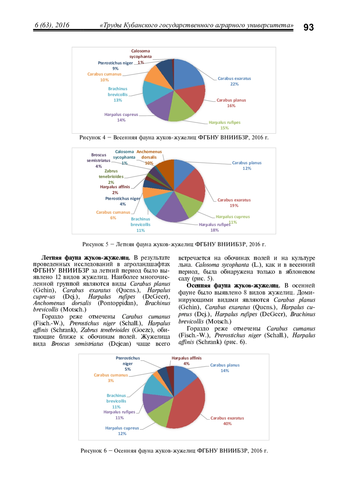 Статья: Сезонная фауна жужелиц (Coleoptera, Carabidae) в агроценозах ФГБНУ "ВНИИБЗР" (Краснодар) в 2016 году (2016)