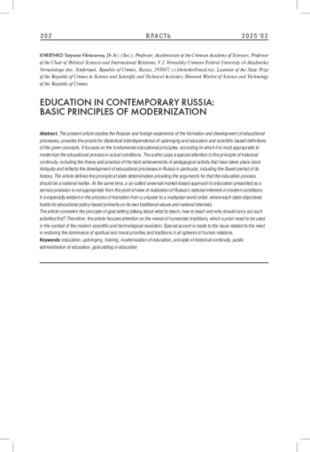 В статье автор рассматривает и обосновывает основополагающие принципы реформирования образовательной системы в России. Они определяются на основе историко-ретроспективного анализа отечественного и зарубежного опыта, а также развития современных образовательных процессов, к которым можно отнести принципы исторической преемственности, государственной детерминации и целеполагания. Автор раскрывает содержание каждого из указанных принципов и доказывает целесообразность их применения в современных условиях модернизации российского образования.