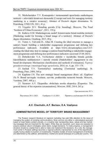 Статья: АДМИНИСТРАТИВНАЯ МОДЕЛЬ УПРАВЛЕНИЯ БРЕНДОМ ТЕРРИТОРИИ (2024)