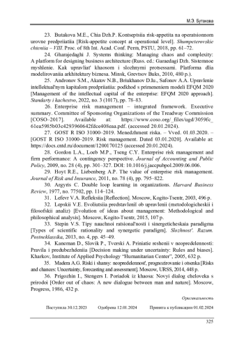 23. Бутакова М.Э., Чиа Дж.П. Концепция риск-аппетита на операционном уровне предприятия // Шумпетеровские чтения - VIII: материалы VIII междунар. науч.-практ. конф. - Пермь: Изд-во Перм. гос. техн. ун-та, 2018. - С. 61-72.