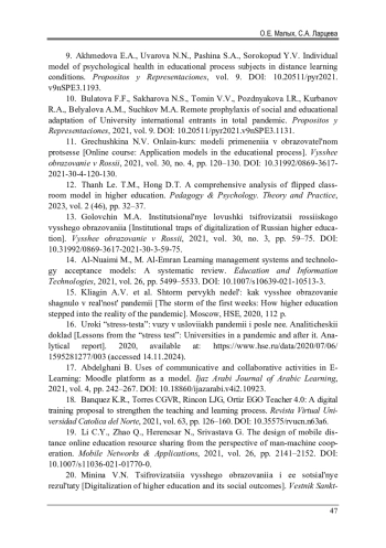 10. Remote Prophylaxis of Social and Educational Adaptation of University International Entrants in Total Pandemic / F.F. Bulatova, N.S. Sakharova, V.V. Tomin, I.R. Pozdnyakova, R.A. Kurbanov, A.M. Belyalova, M.A. Suchkov // Propositos y Representaciones. - 2021. - Vol. 9. - Special Issue. 10.20511/pyr2021. v9nSPE3.1131. DOI: 10.20511/pyr2021.v9nSPE3.1131 EDN: ILRNBK