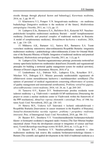 14. Научно-практический комплекс традиционной медицины Бурятии - модель комплиментарной медицины / Е.Ю. Лудупова, Е.А. Бартанова, Б.Г. Бальжиров, Н.Ф. Князюк // Менеджмент качества в медицине. - 2024. - № 1. - С. 116-120. EDN: NYARMU