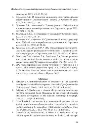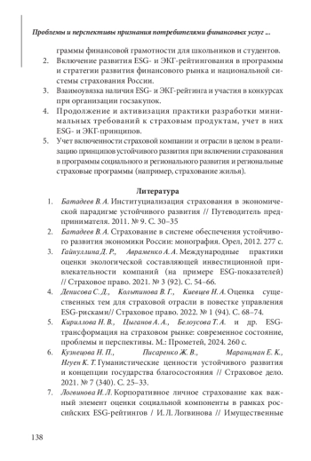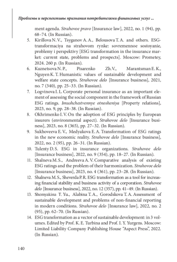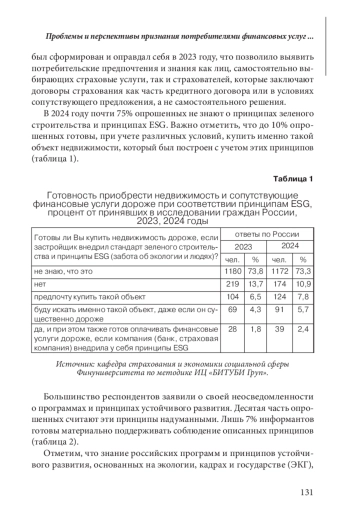 Статья: ПРОБЛЕМЫ И ПЕРСПЕКТИВЫ ПРИЗНАНИЯ ПОТРЕБИТЕЛЯМИ ФИНАНСОВЫХ И СТРАХОВЫХ УСЛУГ В РОССИИ ПРИНЦИПОВ ESG И ЭКГ (2025)