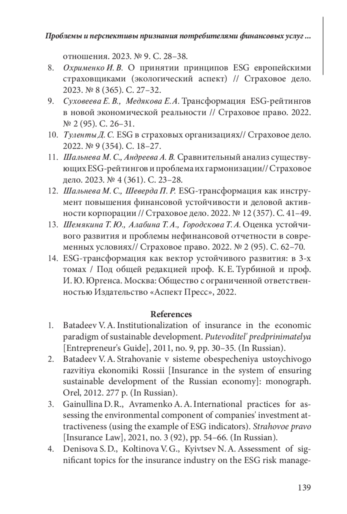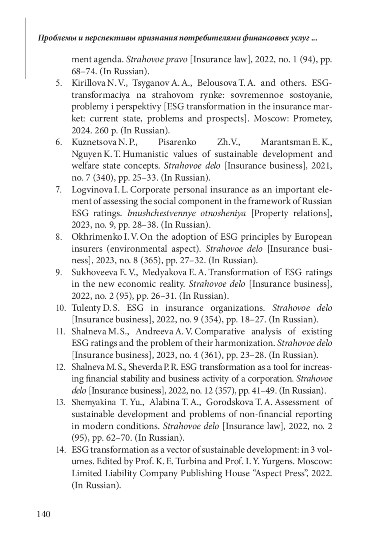 ЦЫГАНОВ А. А. ПРОБЛЕМЫ И ПЕРСПЕКТИВЫ ПРИЗНАНИЯ ПОТРЕБИТЕЛЯМИ ФИНАНСОВЫХ И СТРАХОВЫХ УСЛУГ В РОССИИ ПРИНЦИПОВ ESG И ЭКГ // ЭТАП: ЭКОНОМИЧЕСКАЯ ТЕОРИЯ, АНАЛИЗ, ПРАКТИКА. 2025. № 2