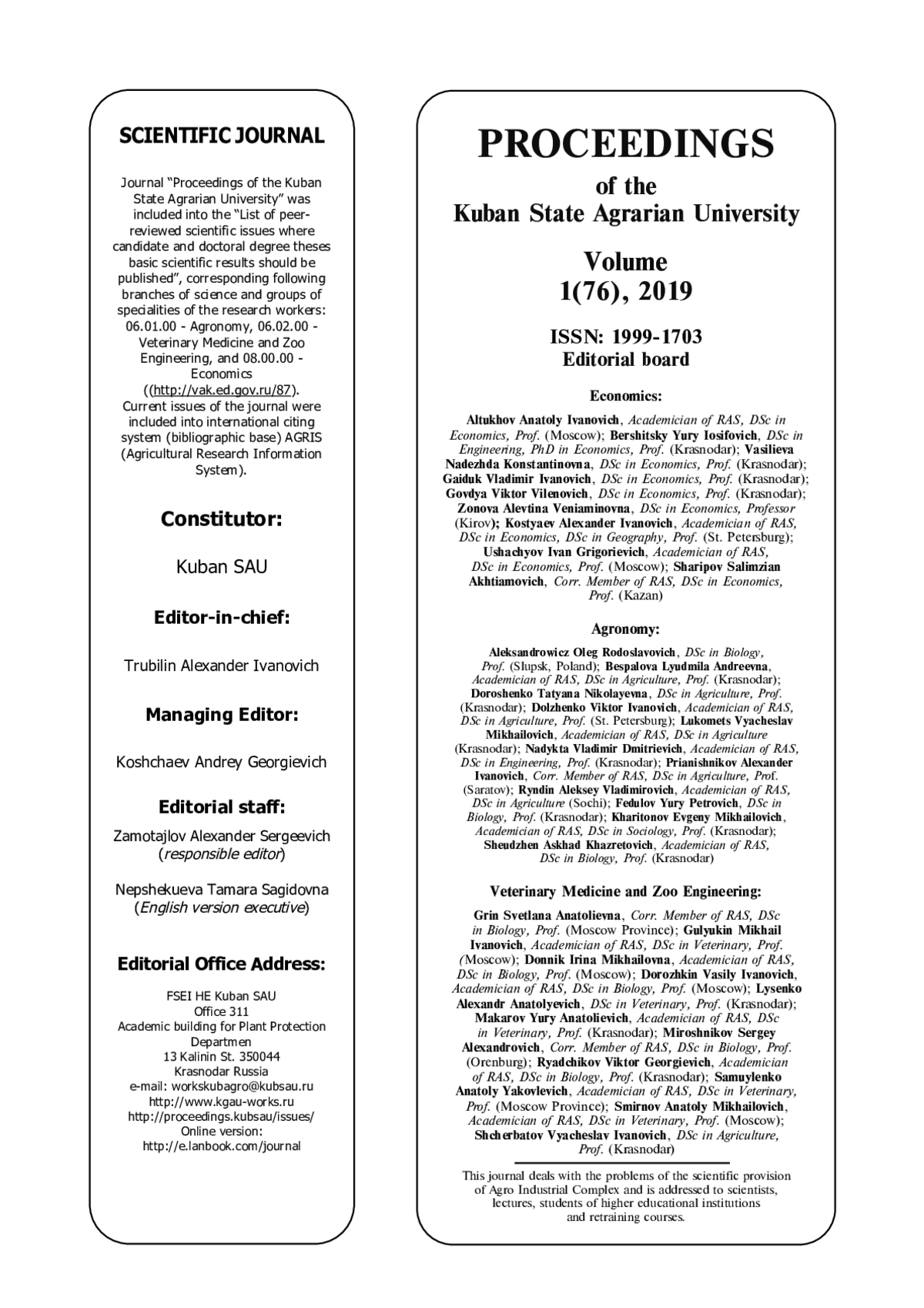 Целью настоящей работы являлось изучение особенностей формирования карабидофауны агролдандшафта, анализ спектра жизненных форм, хорологических комплексов и типов ареала, а также биотопического преферендума видов в условиях лиманно-плавневого природного комплекса Северо-Западного Кавказа в 2016-2018 гг. По результатам наблюдений установлено высокое разнообразие экологических групп жужелиц района исследований, включающих виды с предпочтением лесных, луговых, полевых, приводных, болотных, степных и солончаковых стаций. В спектре жизненных форм по типу питания зоофаги преобладают над миксофитофагами. Всего агроценозы района исследований населяют жужелицы 17 групп жизненных форм. По результатам хорологического анализа выделены виды с экстраголарктическими мультирегиональными, широкими полисекторными и полизональными, европейскими и еврокавказскими лесными, степными, широкотетийскими, широкосредиземноморскими, восточно-средиземноморским, европейско-средиземноморскими, широкоэвксинскими, западнокавказскими и северозападнокавказским типами ареалов. По отношению к влажности жужелицы района исследований являются мезофилами, мезо-ксерофилами, мезо-гигрофилами и гигрофилами.