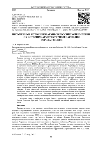 34. Hasanov E.L. Significance of the Written Sources in Study of Medieval Heritage of Ganja // Manuscript and Book Heritage of Ukraine. 2024. Vol. 32(1). P. 116-134. DOI: 10.15407/rksu.32.116 EDN: EEJRZV