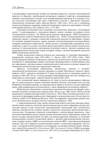 Статья посвящена реконструкции стоимостных показателей сферы образования как отрасли национальной экономики поздней Российской империи. Цель исследования заключается в уточнении имеющихся оценок роли образования на стадии перехода страны от мальтузианского к «современному» режиму экономического роста в ходе модернизации ее экономической и социальной структуры. Были решены следующие задачи: 1) представлены собранные в электронном формате данные источников (отчеты Государственного контроля, Министерства народного просвещения, Центрального статистического комитета); 2) реконструированы ряды показателей расходов на образование разных уровней и институциональных источников; 3) на их основе впервые рассчитаны оценки накопленного объема (запаса) человеческого капитала по восстановительной стоимости и на основе будущих доходов; 4) полученные стоимостные оценки непосредственно сопоставлены с основными макроэкономическими показателями страны. Оценки соответствующих показателей системы образования России и формируемого в ней человеческого капитала доступны в историко-экономической литературе за 1920-2000-е гг. Настоящее исследование углубляет их, делая в целом сопоставимыми во времени. Для обеспечения такой сопоставимости используются методики, разработанные в историко- экономической литературе, адаптированные к проблеме недостаточности исторических количественных данных и пригодные для межстрановых сопоставлений. Полученные результаты свидетельствуют о том, что в ходе запуска «современного» режима экономического роста норма накопления человеческого капитала в России повышалась, его запас увеличивался быстрее физического. Намечаются перспективы использования полученных результатов в последующих эмпирических и теоретических исследованиях.