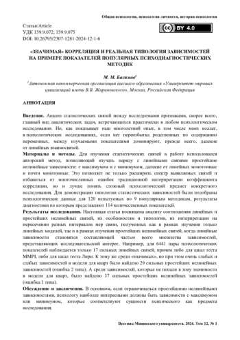БАСИМОВ М. М. «ЗНАЧИМАЯ» КОРРЕЛЯЦИЯ И РЕАЛЬНАЯ ТИПОЛОГИЯ ЗАВИСИМОСТЕЙ НА ПРИМЕРЕ ПОКАЗАТЕЛЕЙ ПОПУЛЯРНЫХ ПСИХОДИАГНОСТИЧЕСКИХ МЕТОДИК // ВЕСТНИК МИНИНСКОГО УНИВЕРСИТЕТА. 2024. ТОМ 12, № 1