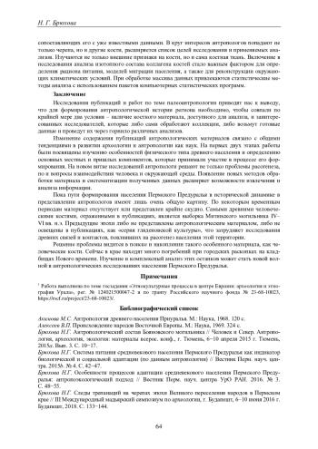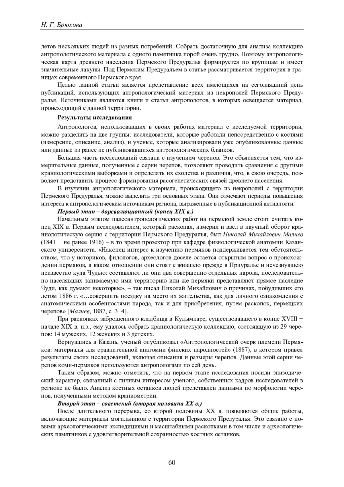 БРЮХОВА Н. Г. ИСТОРИЯ ИЗУЧЕНИЯ АНТРОПОЛОГИЧЕСКОГО МАТЕРИАЛА, ПРОИСХОДЯЩЕГО ИЗ НЕКРОПОЛЕЙ С ТЕРРИТОРИИ ПЕРМСКОГО ПРЕДУРАЛЬЯ // ВЕСТНИК ПЕРМСКОГО УНИВЕРСИТЕТА. ИСТОРИЯ. 2024. № 1 (64)