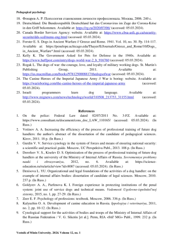 2. Вотинов А. А. Повышение эффективности процесса профессиональной подготовки будущих кинологов: автореф. дис. … канд. пед. наук. Киров, 2011. 18 с.