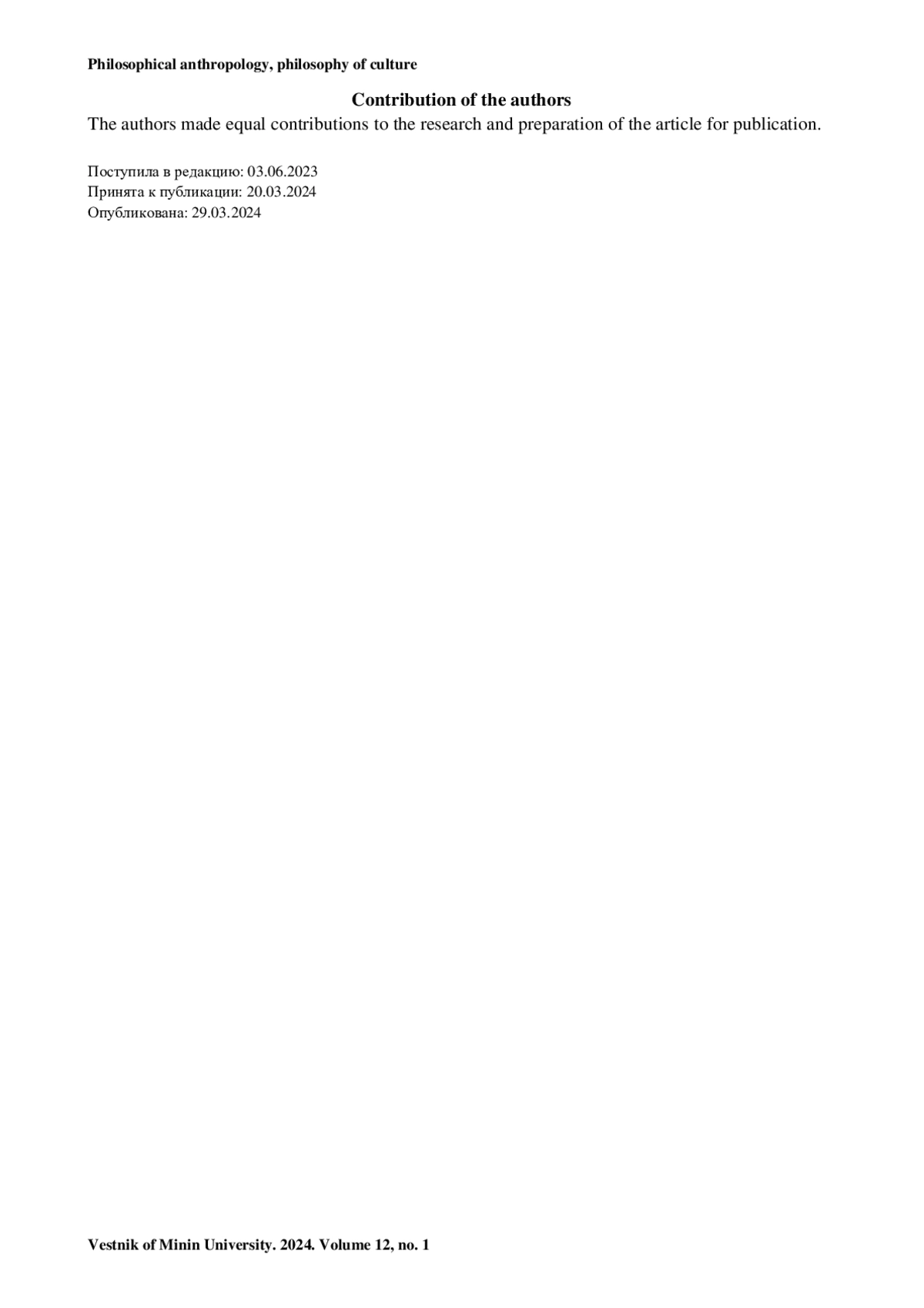 Обсуждение и заключения. Этот сложный системный анализ станет предметом исследований не только авторов статьи, но и научных школ, которые существуют на базе Мининского университета. Результаты данного исследования станут основой изучения религиозной культуры в таких направлениях научной деятельности университета, как философия культуры, религиоведение, философия религии, социальная философия, история философии, философская антропология, теология, педагогические и психологические науки.