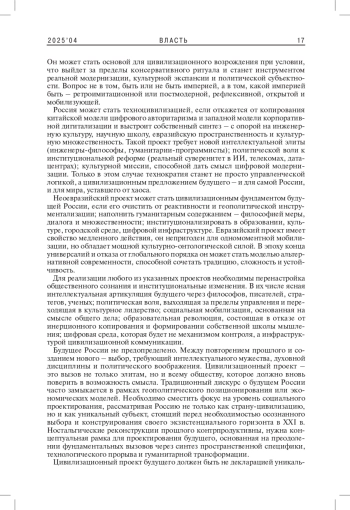 XXI в. все более отчетливо проявляется как век цивилизационных сдвигов, кризисов универсалий и глобального институционального дрейфа. Страны, ранее интегрированные в миропорядок модерности, оказываются перед выбором – следовать логике инерционной интеграции в разрушаемые глобальные цепочки или строить собственные цивилизационные контуры, основанные на альтернативных культурных, духовных, исторических основаниях.