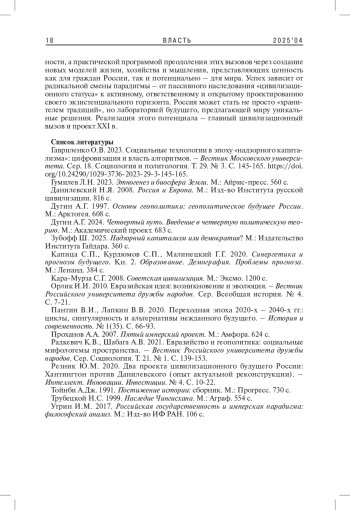 12. Радкевич К.В., Шабага А.В. 2021. Евразийство и геополитика: социальные мифологемы пространства. - Вестник Российского университета дружбы народов. Сер. Социология. Т. 21. № 1. С. 139-153.
