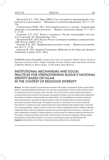 8. Семенова А.Л. 2023. Ислам и политика в России: монография (под ред. А.Л. Семенова). М.: Научный мир. 310 с.