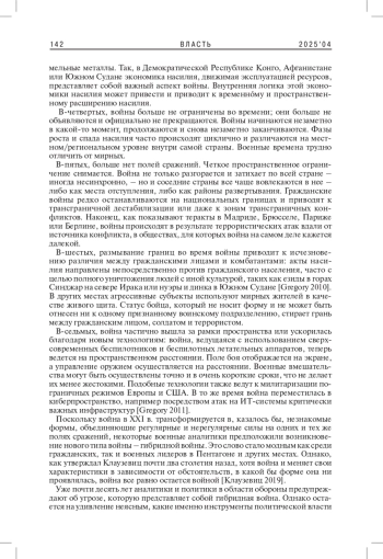 Статья посвящена пониманию природы гибридной войны, собирательный термин которой описывает ее как агрессию, находящуюся в серой зоне между войной и миром, сочетание военных и невоенных способов ведения войны с целью достижения определенных политических, экономических или иных целей. Автор утверждает, что избежать или преодолеть нормативные и стратегические дилеммы, которые несет с собой «война без границ», вряд ли возможно без пересмотра исторически сложившегося понимания войны. Поэтому фокус исследования смещается на рассмотрение традиционного понимания войны как симметричного и регулируемого на международном уровне противостояния двух противников, а также сложной взаимосвязи между историческим военным опытом и вытекающими из него идеями войны. Подводя итоги, автор отмечает, что гибридная сущность войны не поддается четкому концептуальному определению, но, тем не менее, может быть понята в своих разнородных элементах и характеристиках, являясь полезным средством для размышлений о прошлом, настоящем и будущем войны.