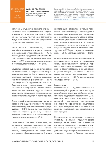 Цель. Выявить и описать дефициты развития надпрофессиональных компетенций, мотиваторов, демотиваторов образовательной и развивающей личность деятельности студентов первого курса Государственного университета просвещения как будущих специалистов-профессионалов.