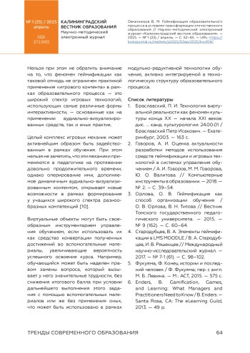 2. Говоров, А. И. Оценка актуальности разработки методов использования средств геймификации и игровых технологий в системах управления обучением / А. И. Говоров, М. М. Говорова, Ю. О. Валитова // Компьютерные инструменты в образовании. - 2018. - № 2. - С. 39-54. EDN: VMZCPB