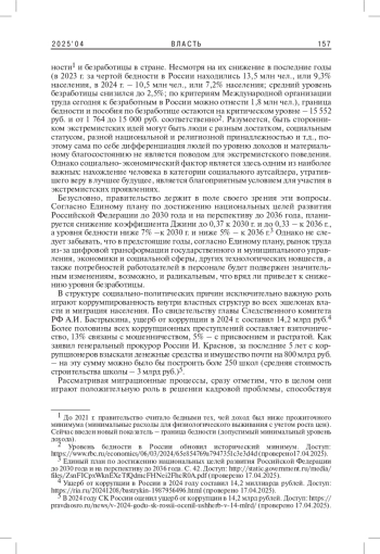Авторы проводят обстоятельный анализ проблемы экстремизма и терроризма как одного из существенных факторов, угрожающих национальной безопасности и целостности российского государства. В статье раскрываются внутренние экономические, социально-политические, идеологические и внешние причины экстремистских проявлений, их влияние на многие сферы жизни российского социума. Авторы подчеркивают, что противодействие экстремизму и терроризму - сложная и многогранная задача, требующая консолидации усилий государства, гражданского общества и каждого гражданина.