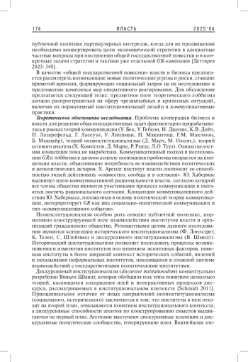 2. Дегтярев А.А. 2023. Свой среди чужих: GR-менеджмент как политическое управление в арсенале “неполитических” агентов. - Вестник Российского университета дружбы народов. Сер. Политология. Т. 25. № 2. С. 348-367.