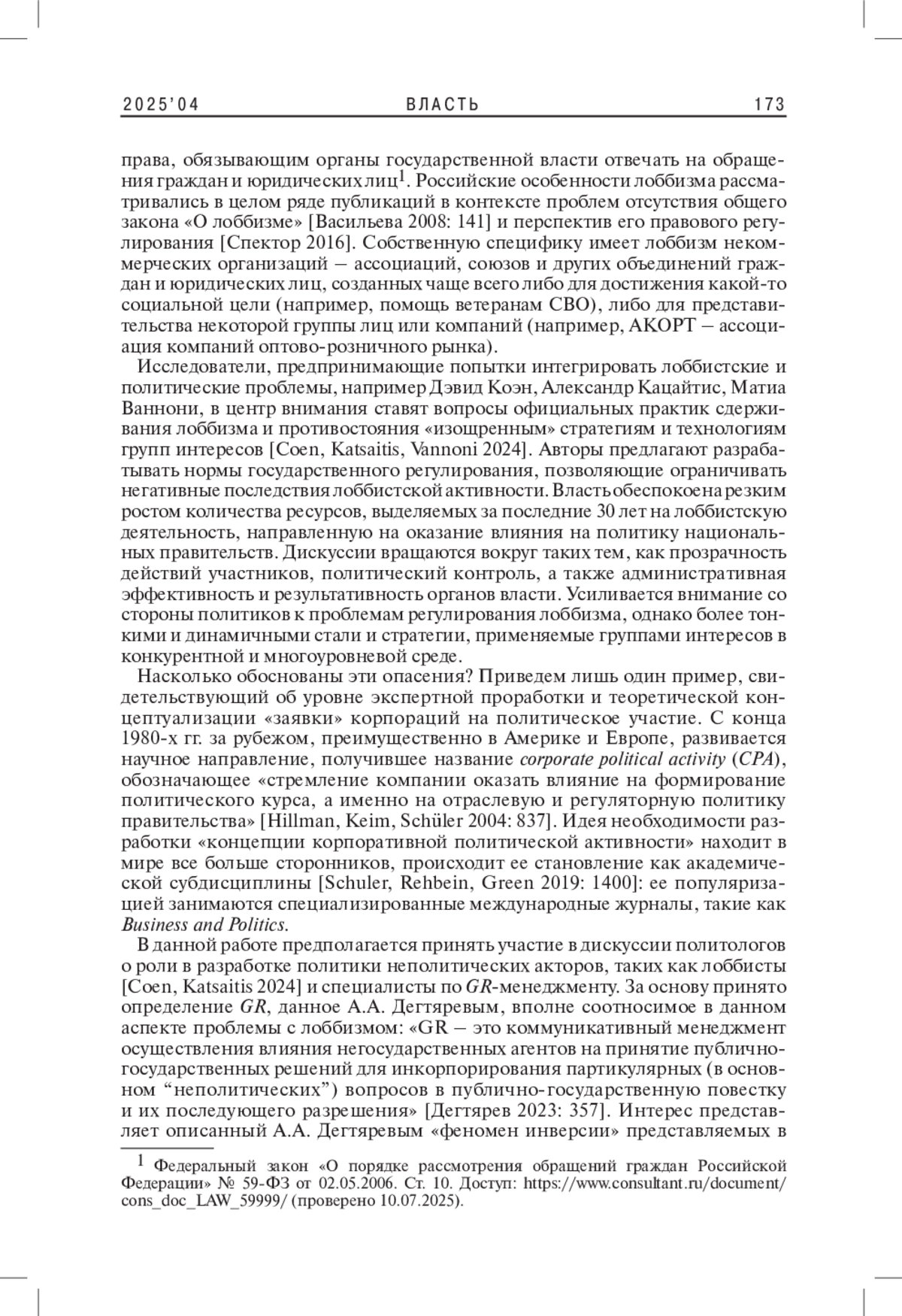 13. Coen D., Katsaitis A., Vannoni M. 2024. Regulating Government Affairs: Integrating Lobbying Research and Policy Concerns. - Regulation & Governance. Vol. 18. Is. 1. Р.73-80. EDN: ZQWJDR