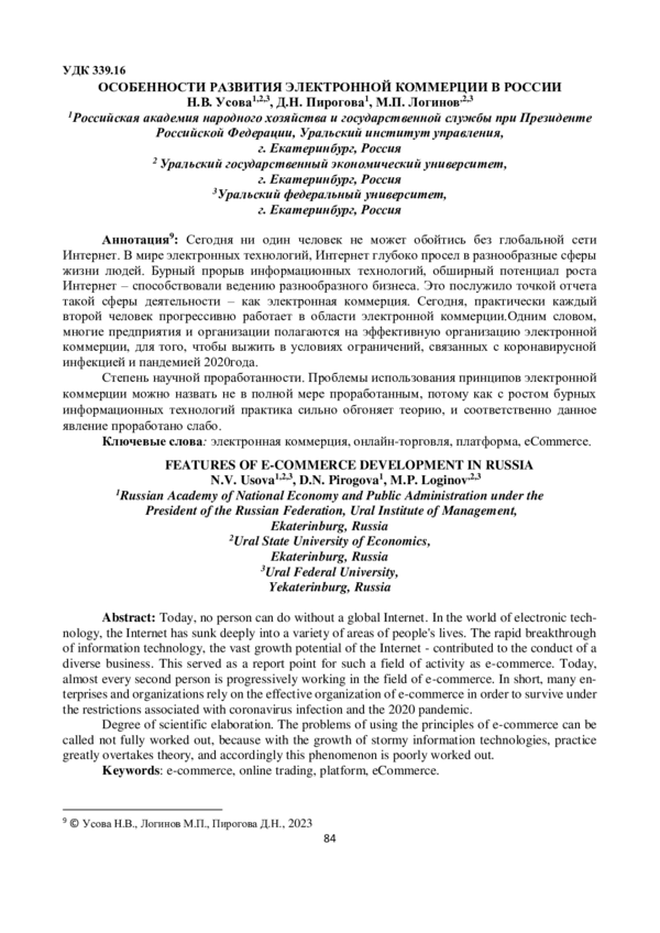 - Милонова М.В., Арбатов Д.К. Электронная коммерция в России: некоторые проблемы и пути их решения. Международная торговля и торговая политика. 2022. С.100–111
