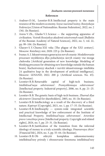 Ключевые фразы: результат интеллектуальной деятельности, закон, Закономерность, ЭКОНОМИЧЕСКИЕ ОТНОШЕНИЯ, системно- образующие активы, НЕМАТЕРИАЛЬНЫЕ АКТИВЫ, ИНТЕЛЛЕКТУАЛЬНАЯ СОБСТВЕННОСТЬ, ИНТЕЛЛЕКТУАЛЬНЫЙ КАПИТАЛ, интеллектуальная природа, интеллософия, ДИВЕРСИФИКАЦИЯ, ПРОИЗВОДИТЕЛЬНОСТЬ ТРУДА, финансовые технологии, инновации, научно-техниче- ские разработки