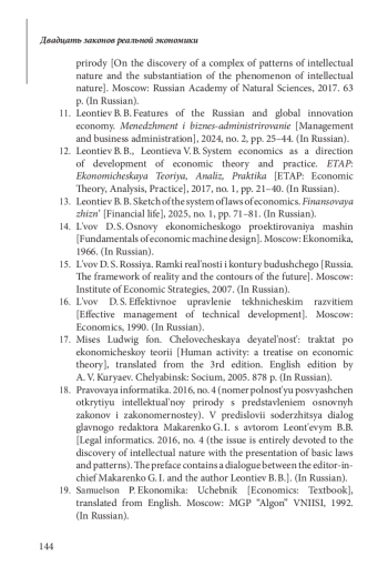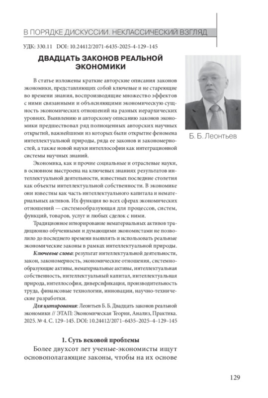 ЛЕОНТЬЕВ Б.Б. ДВАДЦАТЬ ЗАКОНОВ РЕАЛЬНОЙ ЭКОНОМИКИ // ЭТАП: ЭКОНОМИЧЕСКАЯ ТЕОРИЯ, АНАЛИЗ, ПРАКТИКА. 2025. № 4
