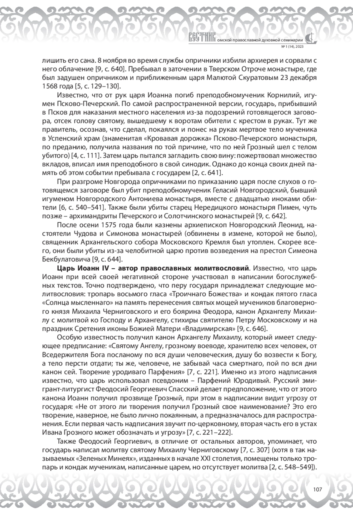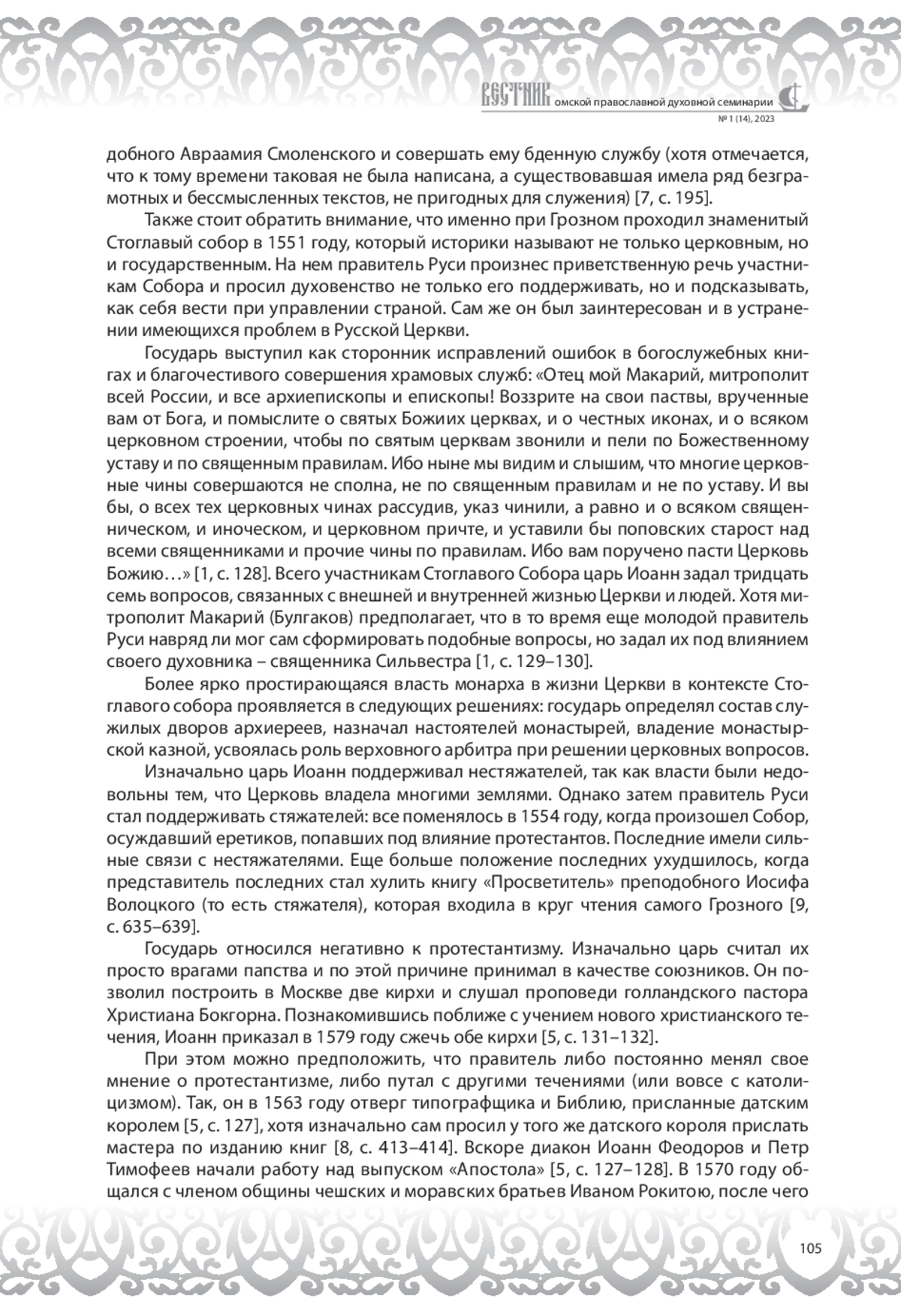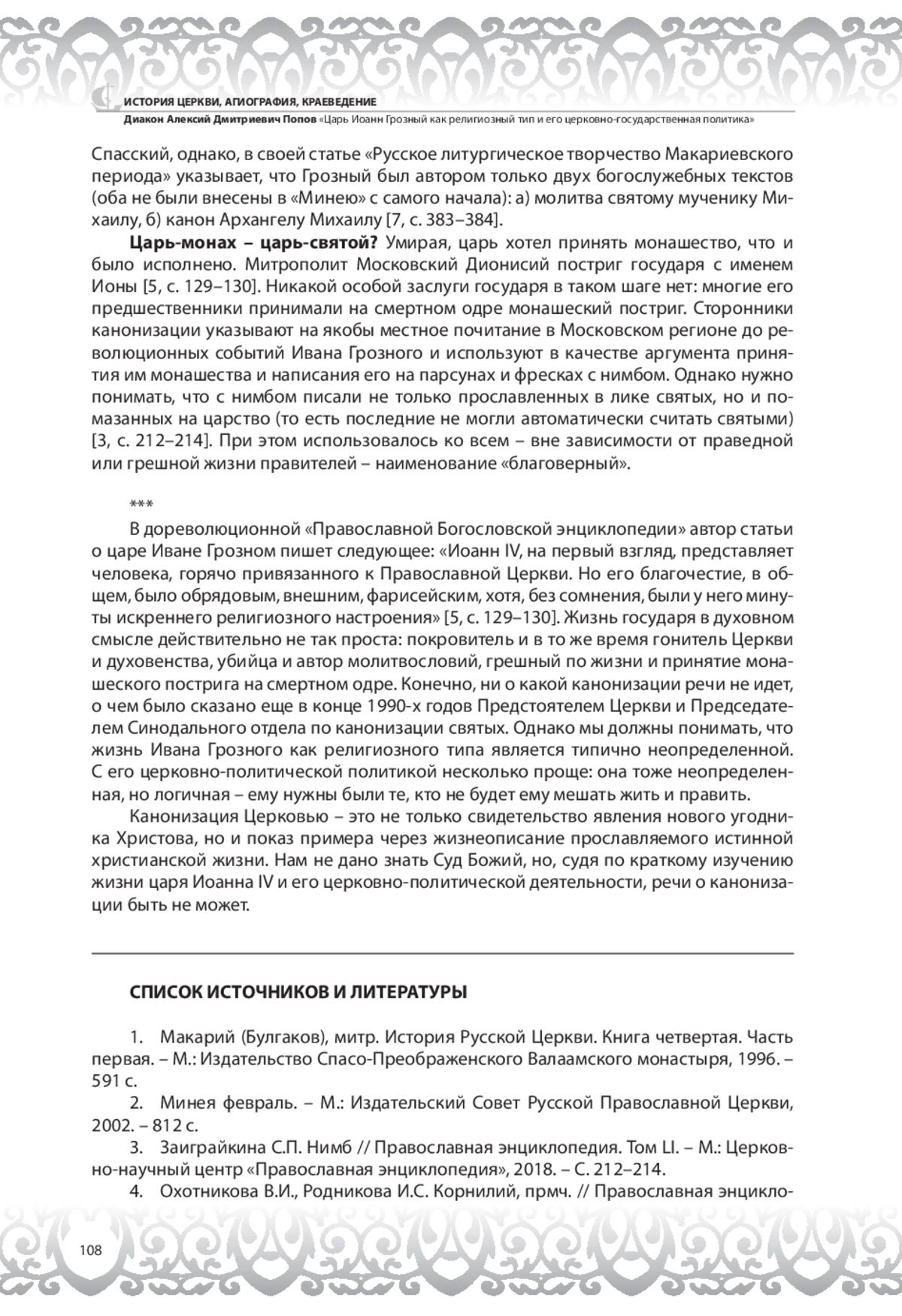 Попов А.Д., диак. Царь Иоанн Грозный как религиозный тип и его церковно-государственная политика // Вестник Омской православной духовной семинарии. - 2023. - №1 (14). - С.104-109.