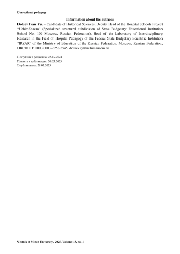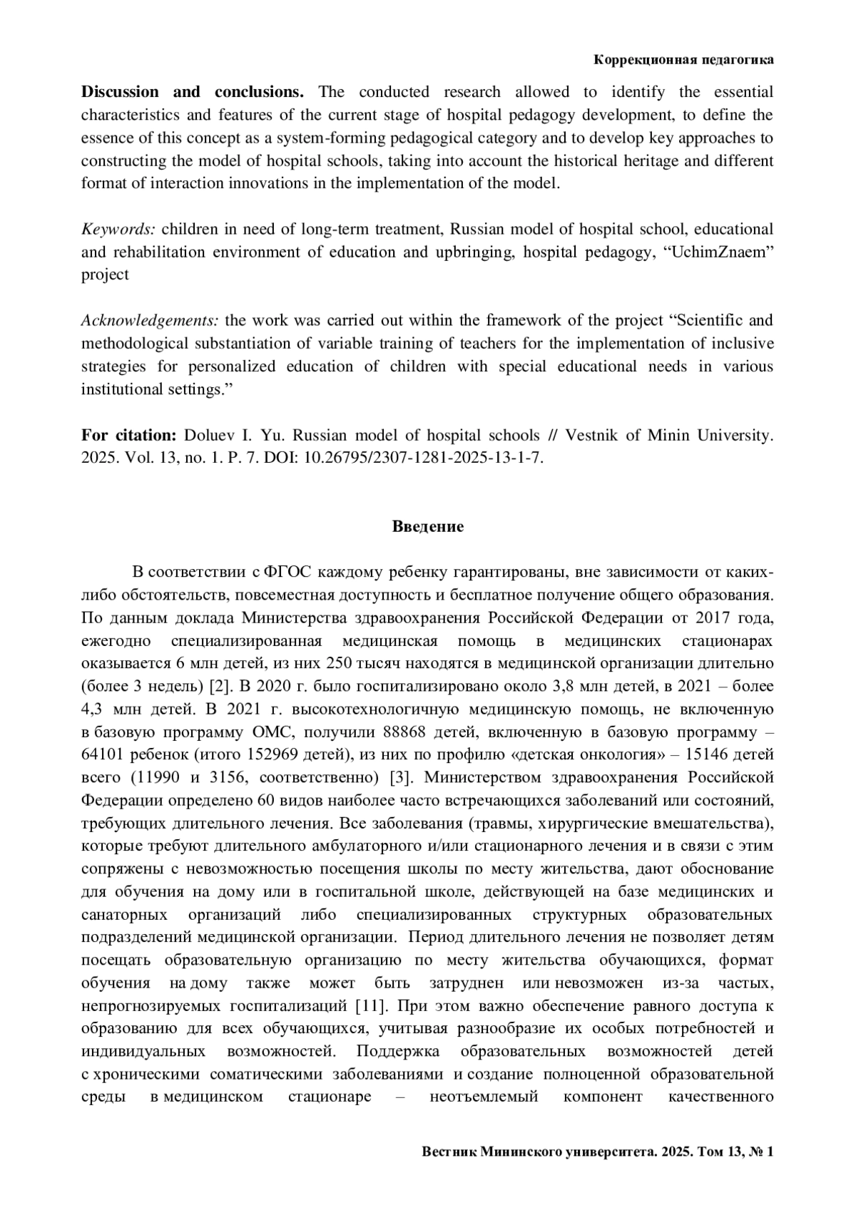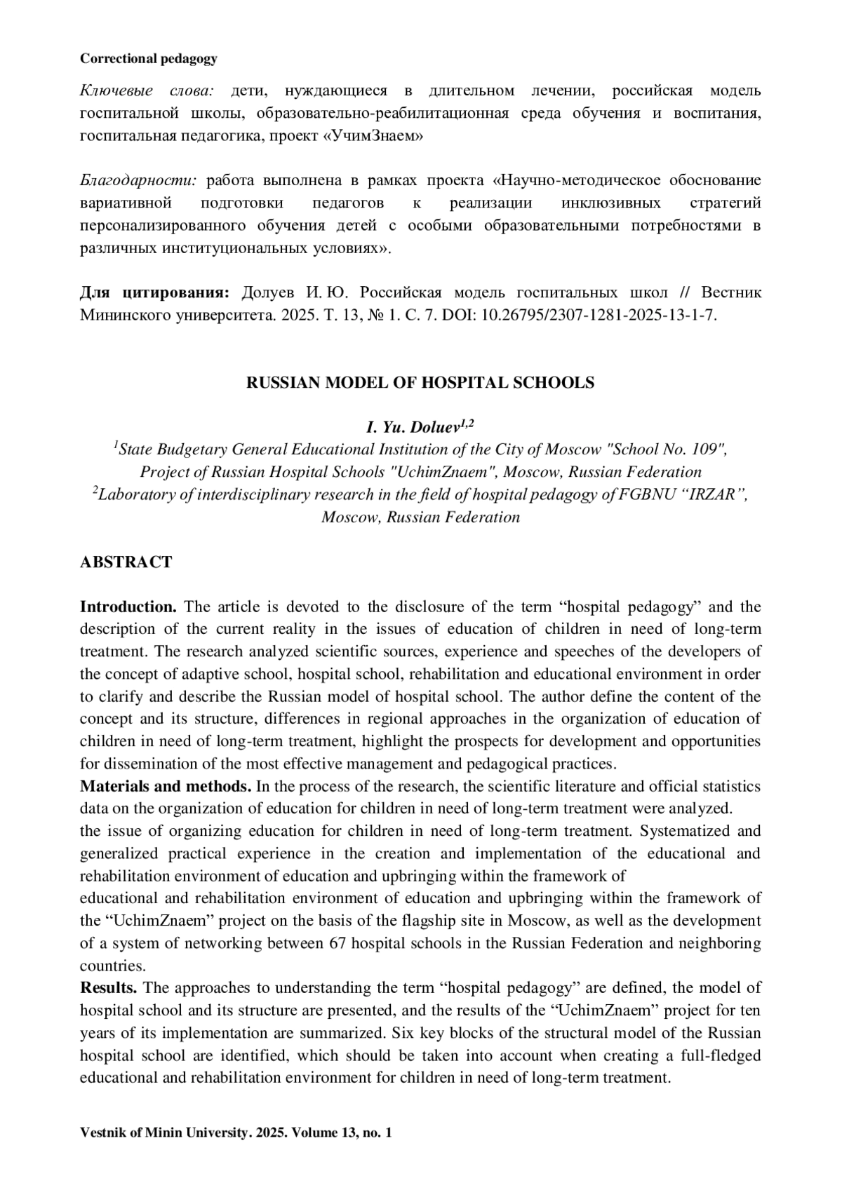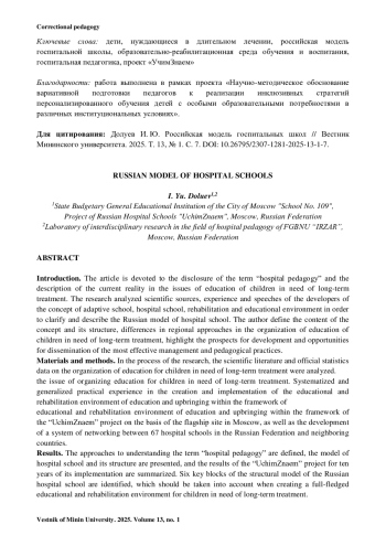 ДОЛУЕВ И. Ю. РОССИЙСКАЯ МОДЕЛЬ ГОСПИТАЛЬНЫХ ШКОЛ // ВЕСТНИК МИНИНСКОГО УНИВЕРСИТЕТА. 2025. ТОМ 13, № 1