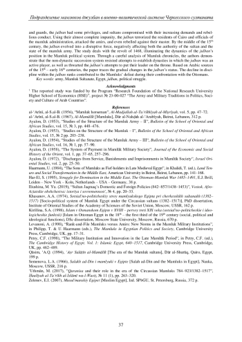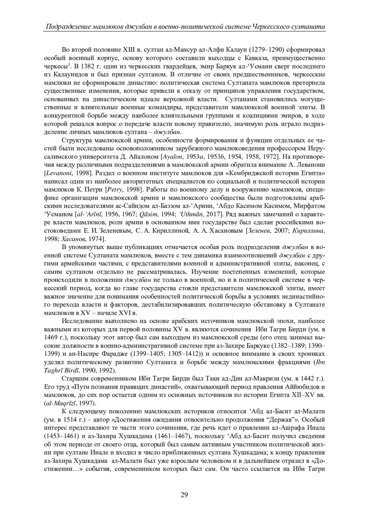 Статья: ПОДРАЗДЕЛЕНИЕ МАМЛЮКОВ ДЖУЛБАН В ВОЕННО-ПОЛИТИЧЕСКОЙ СИСТЕМЕ ЧЕРКЕССКОГО СУЛТАНАТА (1382-1517) (2024)