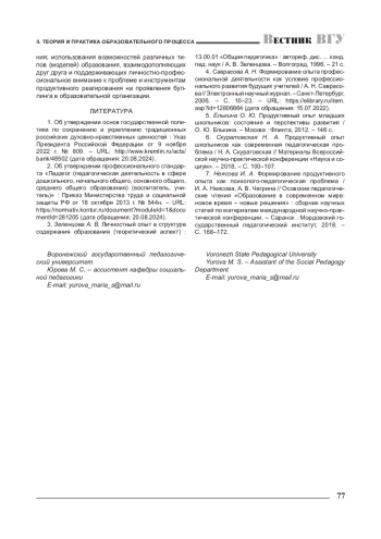 7. Неясова И. А. Формирование продуктивного опыта как психолого-педагогическая проблема / И. А. Неясова, А. В. Чегрина // Осовские педагогические чтения “Образование в современном мире: новое время - новые решения”: сборник научных статей по материалам международной научно-практической конференции. - Саранск: Мордовский государственный педагогический институт, 2018. - С. 168-172.
