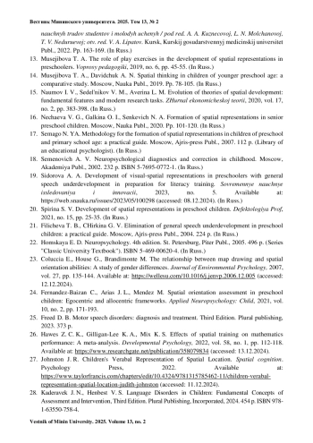 14. Мусейибова Т. А., Давидчук А. Н. Пространственное мышление у детей младшего дошкольного возраста: сравнительное исследование. М.: Наука, 2019. С. 78-105.