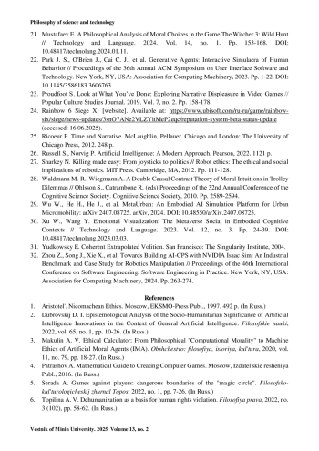 21. Mustafaev E. A Philosophical Analysis of Moral Choices in the Game The Witcher 3: Wild Hunt // Technology and Language. 2024. Vol. 14, no. 1. Pp. 153-168. https://doi.org/10.48417/technolang.2024.01.11.