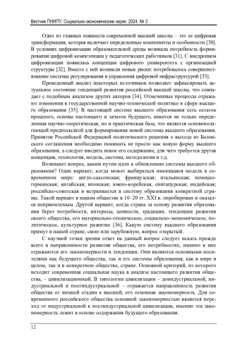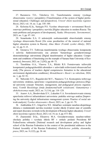 27. Разумова, Т.О. Трансформация системы высшего образования: вызовы и перспективы / Т.О. Разумова, И.Г. Телешова // Уровень жизни населения регионов России. - 2023. - Т. 19, № 3. - С. 338-349. EDN: GGKNRO