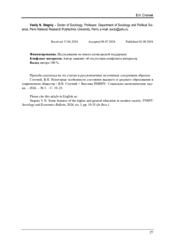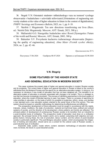 36. Стегний, В.Н. Ориентации студентов технического вуза на ценность высшего образования в будущем в условиях цифровизации / В.Н. Стегний // Вестник Пермского национального исследовательского политехнического университета. Социально-экономические науки. - 2023. - № 1. - С. 8-19. EDN: KKHOGL