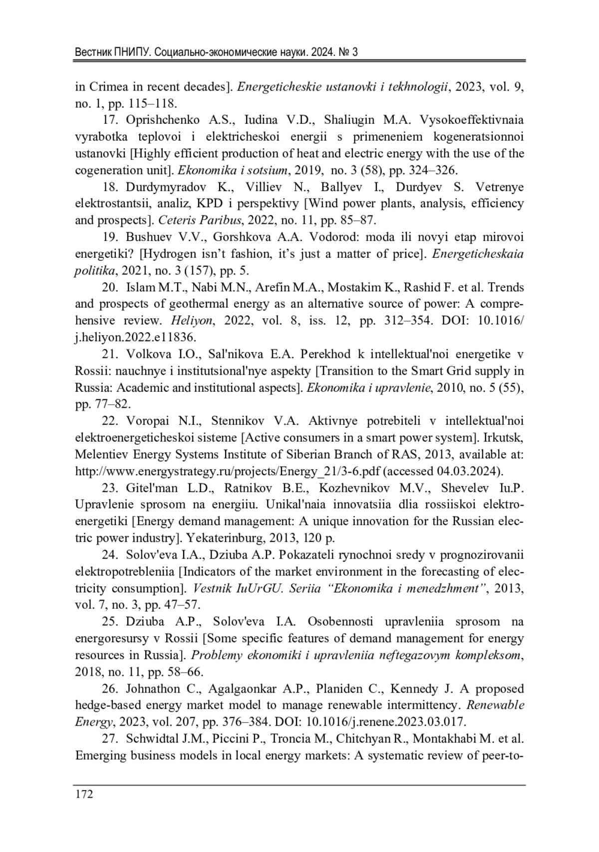 27. Emerging business models in local energy markets: A systematic review of peer-to-peer, community self-consumption, and transactive energy models /j.M. Schwidtal, P. Piccini, M. Troncia, R. Chitchyan, M. Montakhabi [et al.] // Renewable and Sustainable Energy Reviews. - 2023. - Vol. 179. - P. 256-274. DOI: 10.1016/j.rser.2023.113273