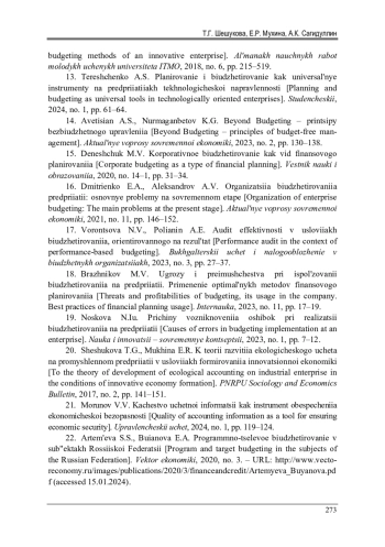 13. Терещенко, А.С. Планирование и бюджетирование как универсальные инструменты на предприятиях технологической направленности / А.С. Терещенко // Студенческий. - 2024. - № 1. - С. 61-64. EDN: TWACUS