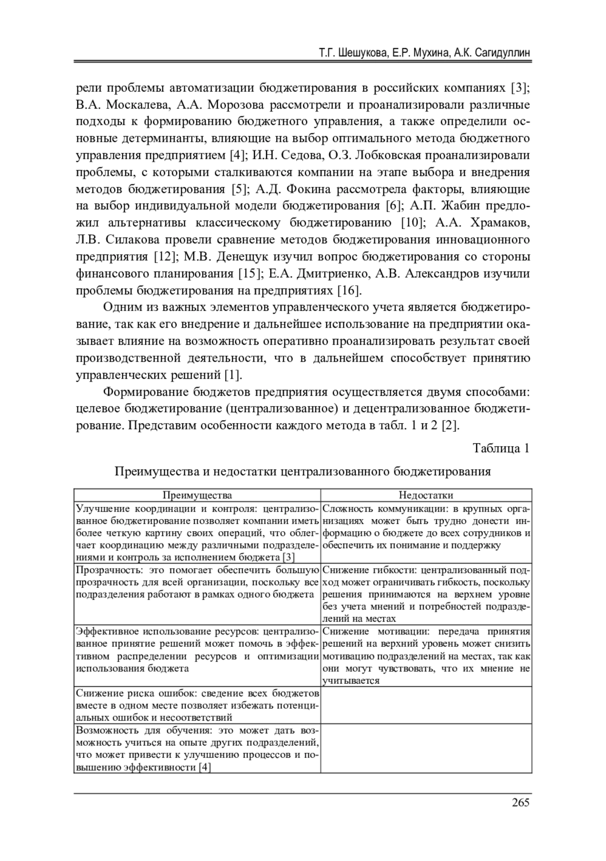 Научный обзор литературных источников показал, что многие ученые изучают вопрос выбора оптимального вида бюджетирования. Следует выделить ряд трудов и научных работ: А. С. Боярченкова рассмотрела проблемы внедрения бюджетирования и инструменты для эффективного составления бюджетов [1]; А. А. Воронина предложила виды программного обеспечения для внедрения в бюджетирование [2]; А. М. Бурчаков, С. Г. Маликова рассмотрели проблемы автоматизации бюджетирования в российских компаниях [3]; В. А. Москалева, А. А. Морозова рассмотрели и проанализировали различные подходы к формированию бюджетного управления, а также определили основные детерминанты, влияющие на выбор оптимального метода бюджетного управления предприятием [4]; И. Н. Седова, О. З. Лобковская проанализировали проблемы, с которыми сталкиваются компании на этапе выбора и внедрения методов бюджетирования [5]; А. Д. Фокина рассмотрела факторы, влияющие на выбор индивидуальной модели бюджетирования [6]; А. П. Жабин предложил альтернативы классическому бюджетированию [10]; А. А. Храмаков, Л. В. Силакова провели сравнение методов бюджетирования инновационного предприятия [12]; М. В. Денещук изучил вопрос бюджетирования со стороны финансового планирования [15]; Е. А. Дмитриенко, А. В. Александров изучили проблемы бюджетирования на предприятиях