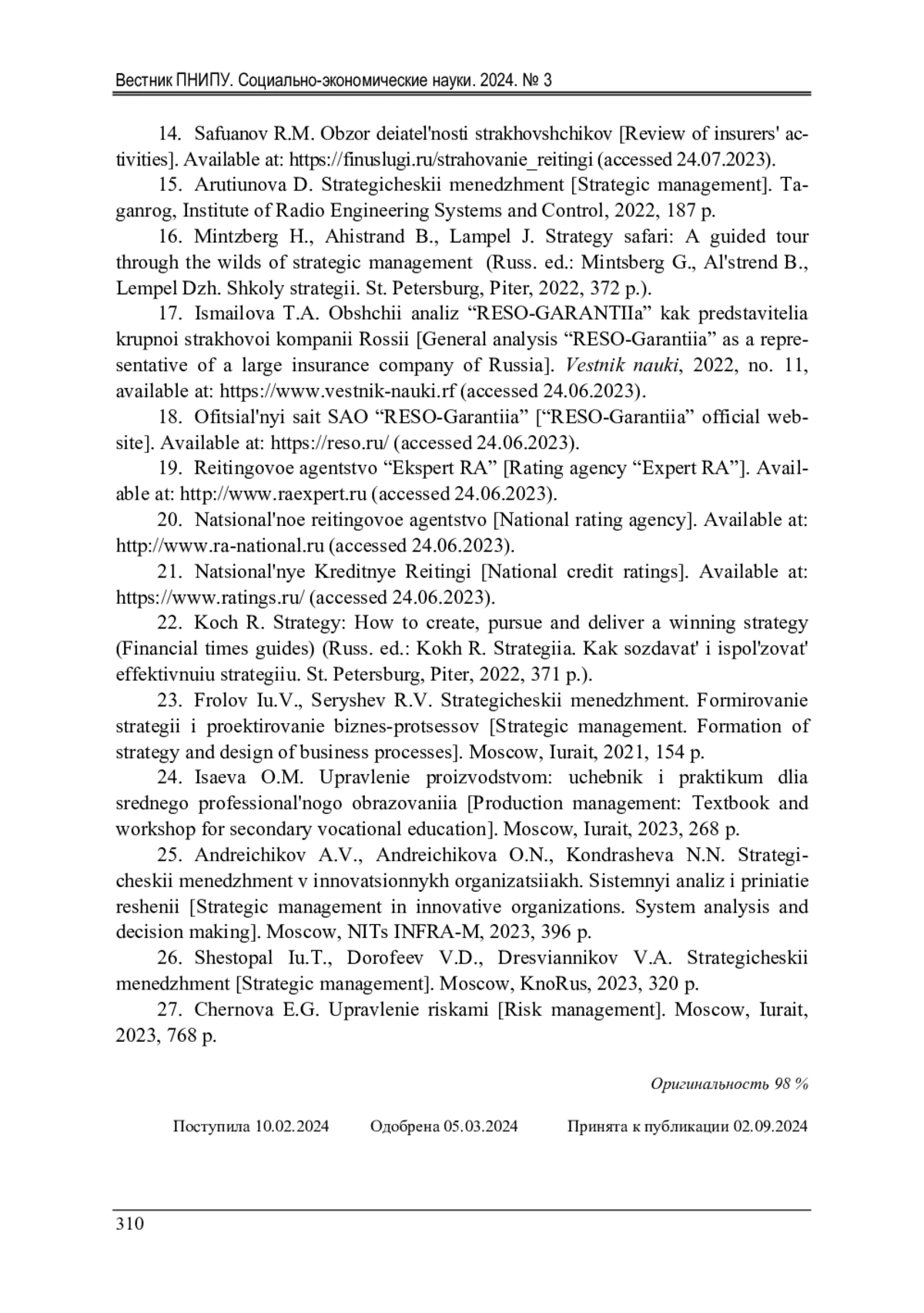15. Арутюнова, Д.Г. Стратегический менеджмент: учеб. пособие / Д.Г. Арутюнова; ТТИ ЮФУ. - Таганрог, 2022. - 187 с.