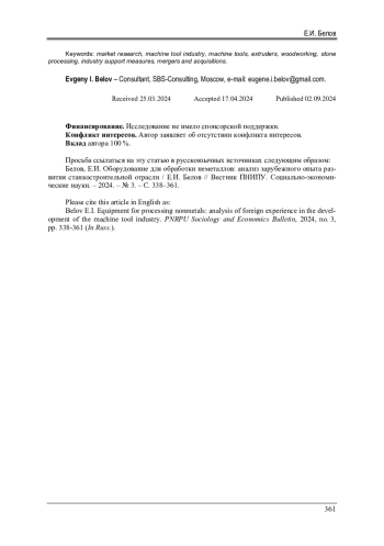 13. Вышел годовой обзор ключевых отраслей и рынков “Рынок продукции станкостроения - 2020” [Электронный ресурс] / Ин-т “Центр развития” НИУ ВШЭ. - URL: https://dcenter.hse.ru/news/415044604.html (дата обращения: 10.08.2023).
