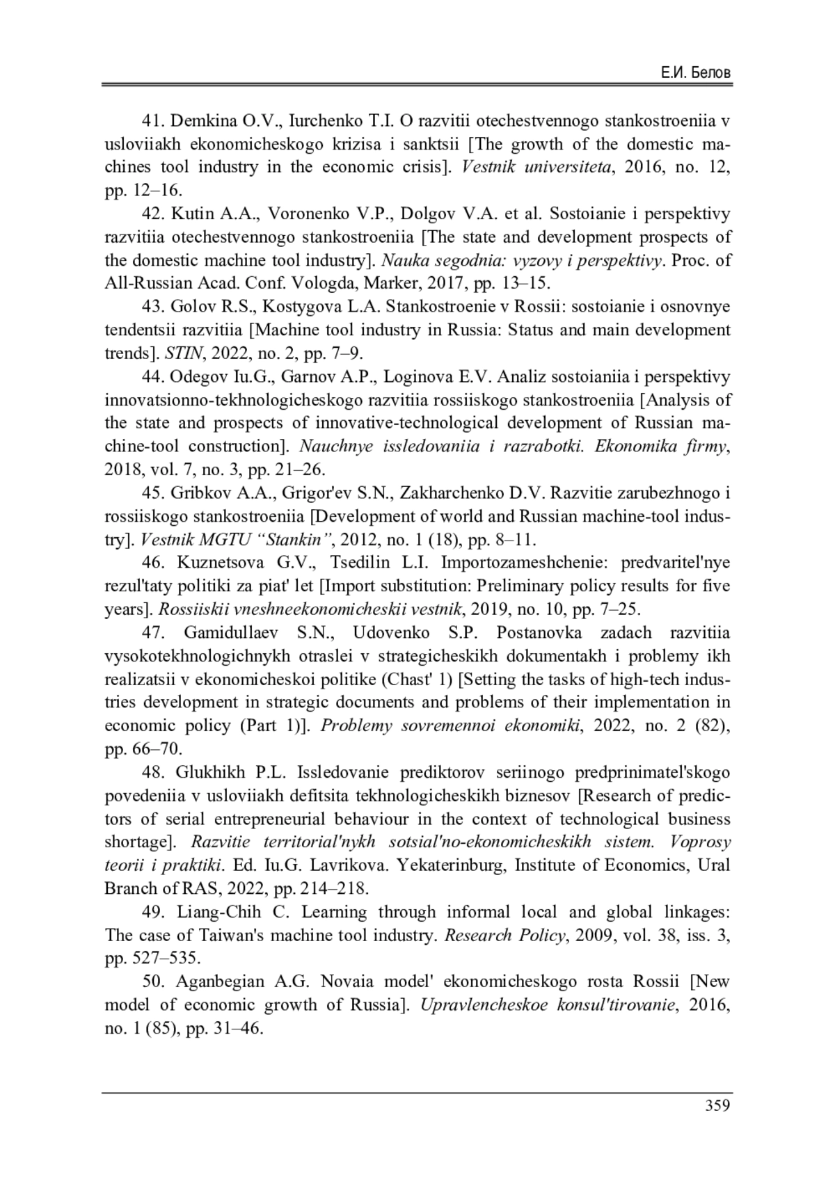 47. Гамидуллаев, С.Н. Постановка задач развития высокотехнологичных отраслей в стратегических документах и проблемы их реализации в экономической политике (Часть 1) / С.Н. Гамидуллаев, С.П. Удовенко // Проблемы современной экономики. - 2022. - № 2(82). - С. 66-70.
