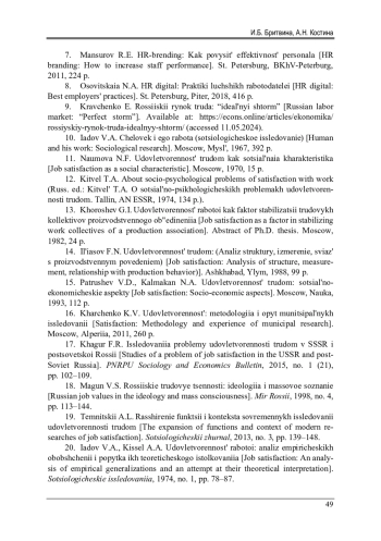19. Темницкий, А.Л. Расширение функций и контекста современных исследований удовлетворенности трудом / А.Л. Темницкий // Социологический журнал. - 2013. - № 3. - С. 139-148. EDN: RDMAAR
